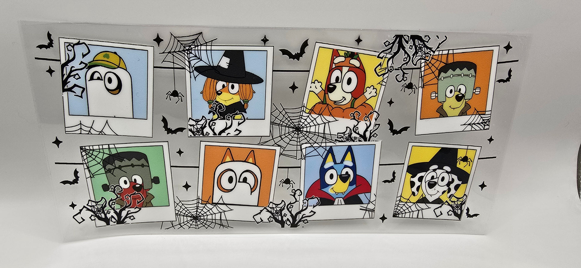 Bring some spooky fun to your tumbler with the Haunted Friends wrap! Featuring adorable characters dressed up for Halloween β from witches and ghosts to Frankenstein and pumpkins β each framed in cute βphoto styleβ snapshots, surrounded by spiderwebs, bats, and stars.