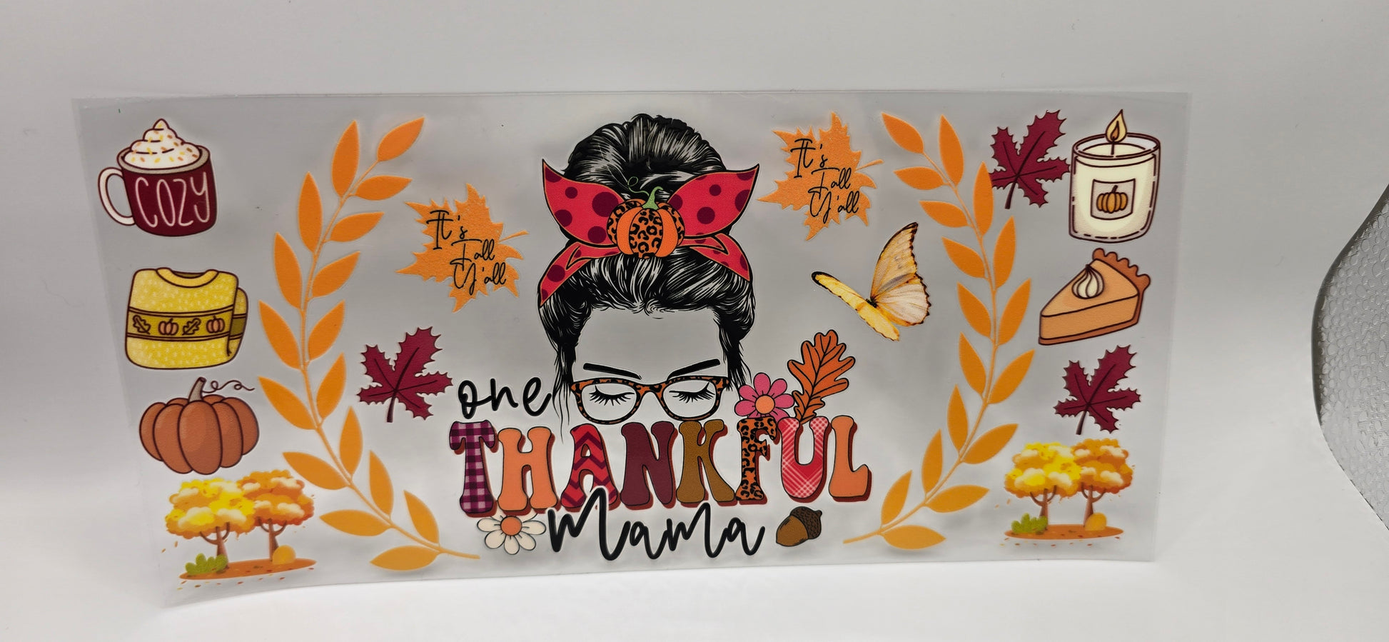 Celebrate cozy fall vibes with the One Thankful Mama Wrap! Featuring a chic mama design with a pumpkin headband, fall leaves, pie, coffee, candles, and cozy autumn details, this wrap is perfect for showing gratitude all season long.