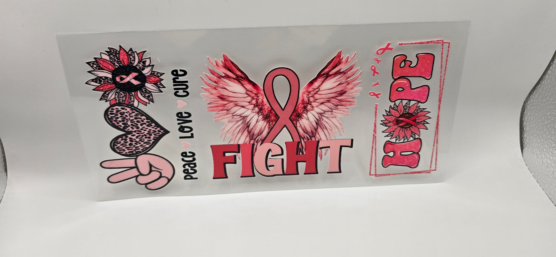 Show your strength and support with the Peace Love Cure Wrap. Featuring a pink ribbon with angel wings, bold “Fight” and “Hope” designs, and sunflower accents, this wrap is a powerful tribute to breast cancer warriors and survivors. Perfect for raising awareness and spreading positivity, it’s a meaningful way to carry hope, courage, and love with you. 🎀🌻💪
