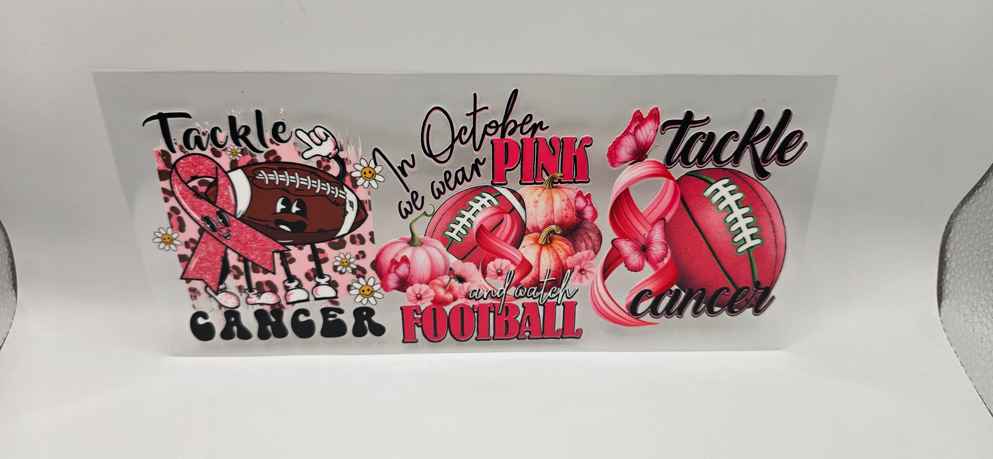 Show your strength on and off the field with the Tackle Cancer Wrap. Featuring bold football graphics, pink ribbons, and the inspiring message “In October We Wear Pink”, this design is a powerful tribute to Breast Cancer Awareness Month. Perfect for sports fans, survivors, and supporters who want to spread hope while tackling cancer together. 🏈🎀💪