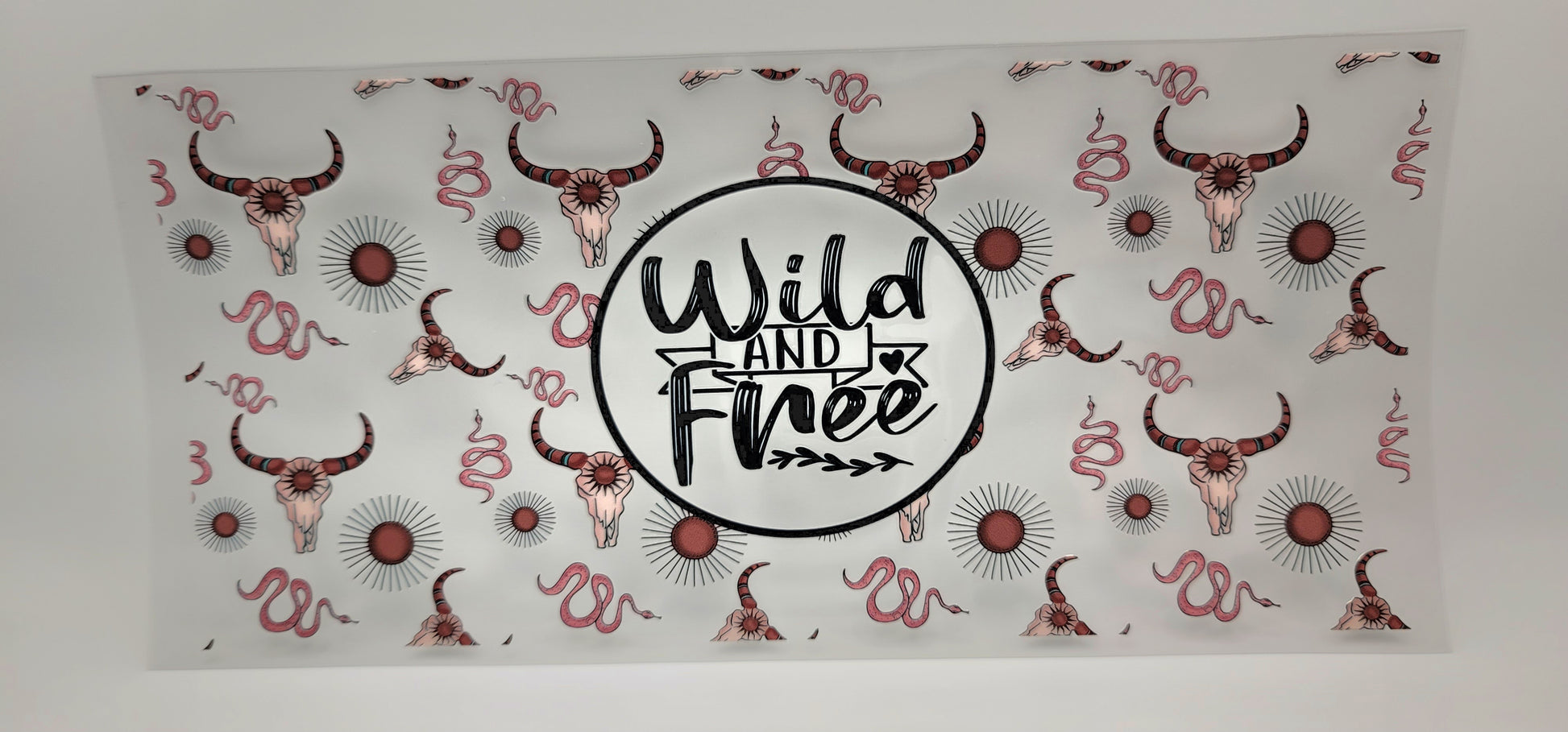 A bold center graphic surrounded by desert suns, snakes, and longhorn skulls. With its rugged western vibe and fearless energy, this wrap is perfect for anyone who lives life untamed and sips with freedom.