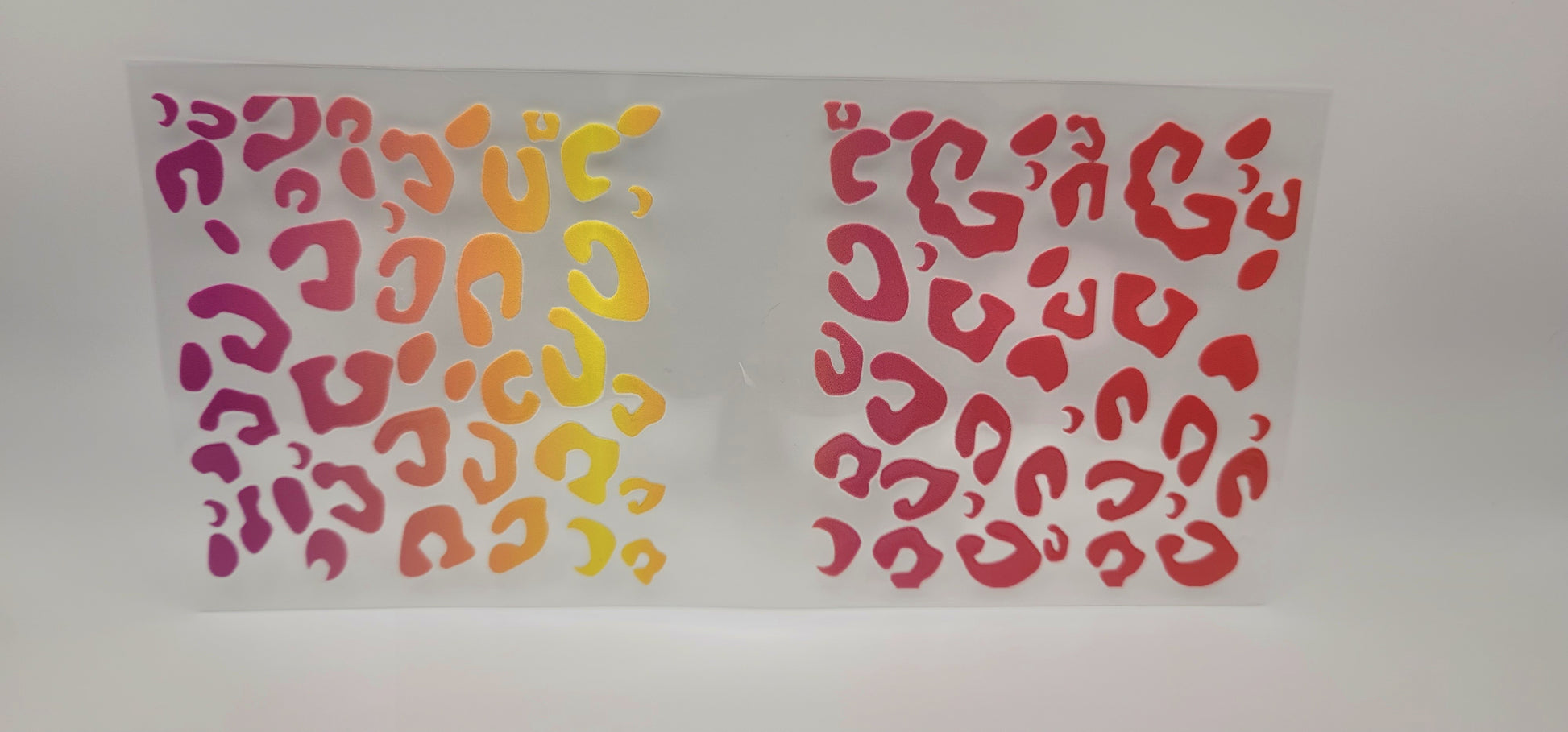 Turn up the heat with this bold leopard print wrap featuring fiery scarlet spots alongside a fierce gradient that fades from magenta to blazing orange and golden yellow. It’s the perfect mix of wild and untamed energy—like a desert sunset colliding with outlaw spirit. Whether you’re chasing neon nights or rugged western vibes, this wrap makes any tumbler roar with attitude.